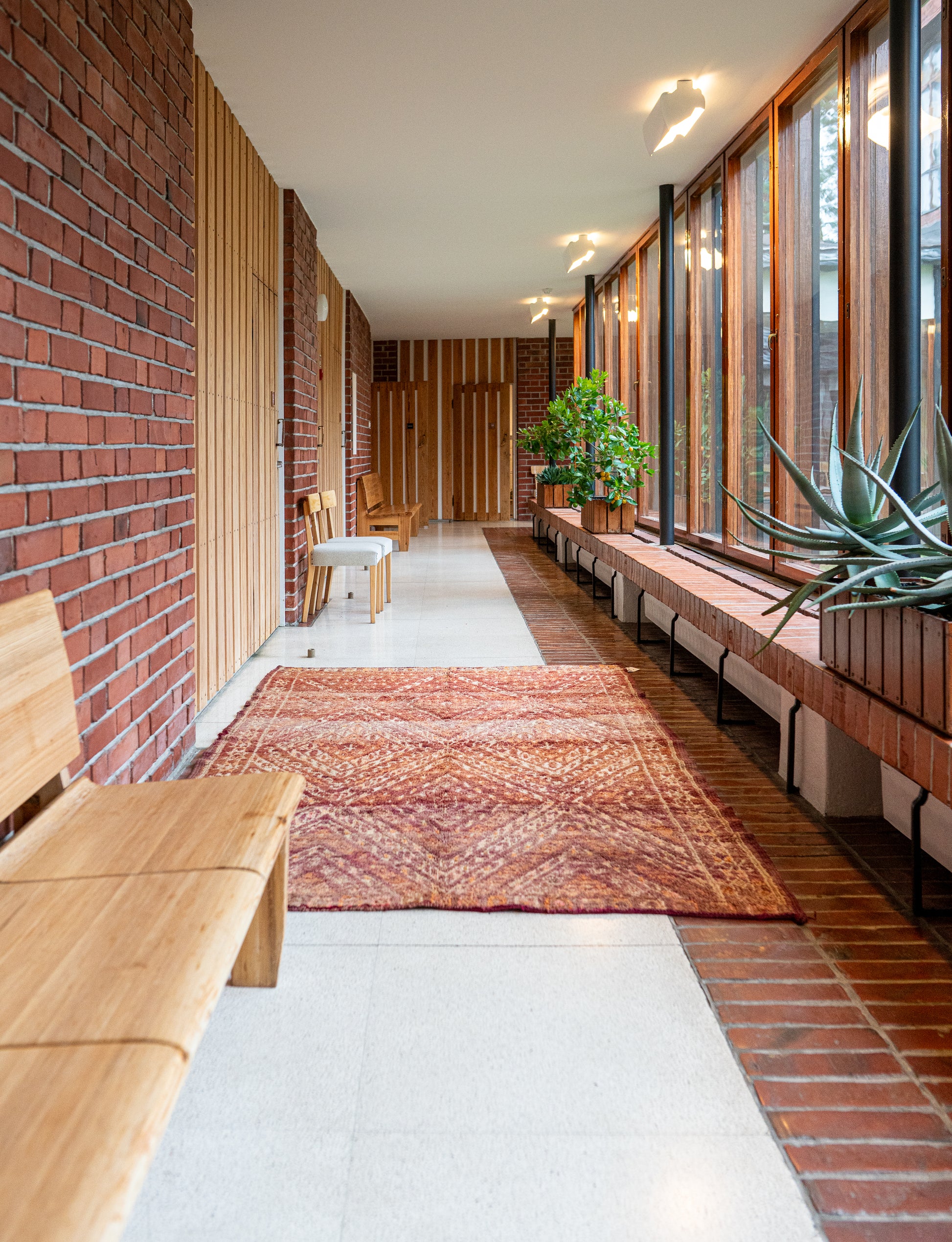 The balanced geometric design gives the rug a calm yet lively expression. The colour palette works especially beautifully alongside warm materials such as brick and wood.